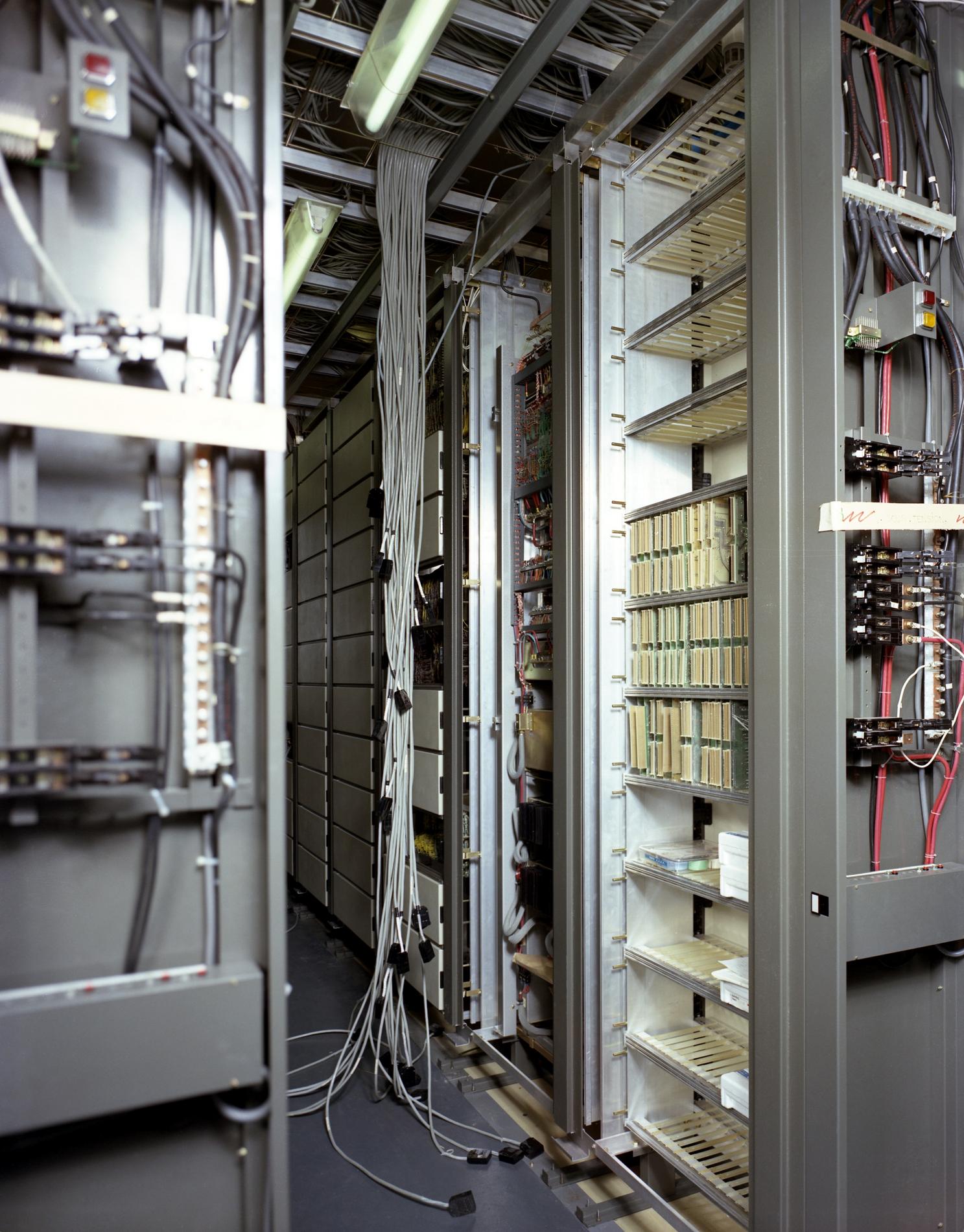 Ci-dessus : derrière la première travée se trouve le Réseau de Connexion du Commutateur SOCRATE, réalisé en matériel crossbar CP400.
