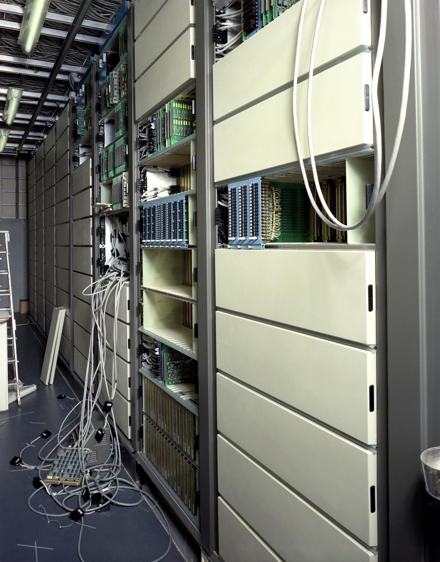 Ci-dessus : travée des Calculateurs du Commutateur AXE Spatial Orléans Grenier-à-Sel (OR10), alors en cours de tests.
