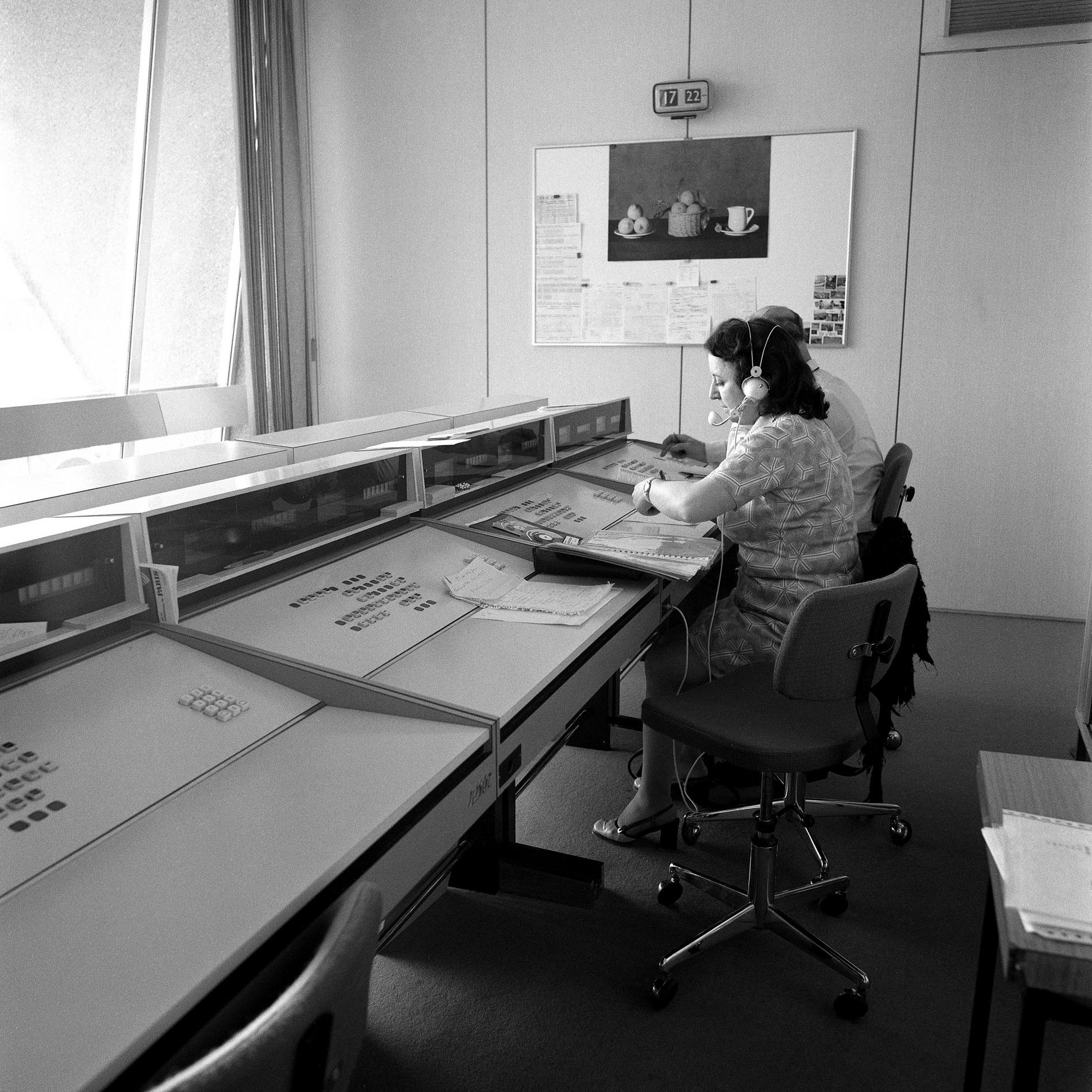 Analogie avec la position de travail d'une Opératrice dans un central manuel (en l'espèce, partie sauvegardée du central Paris Inter-Archives.)