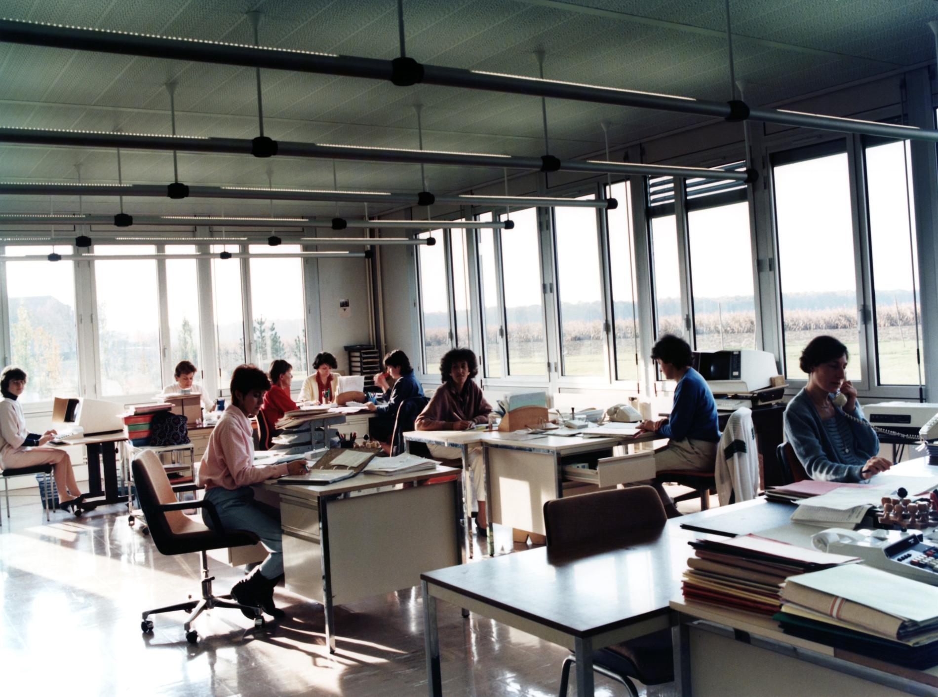 Ci-dessus : essais d'édition des premières Factures Détaillées PTT expérimentales, en Avril 1983, en Centre de Facturation et de Recouvrement des Télécommunications. Coll. C. R-V.