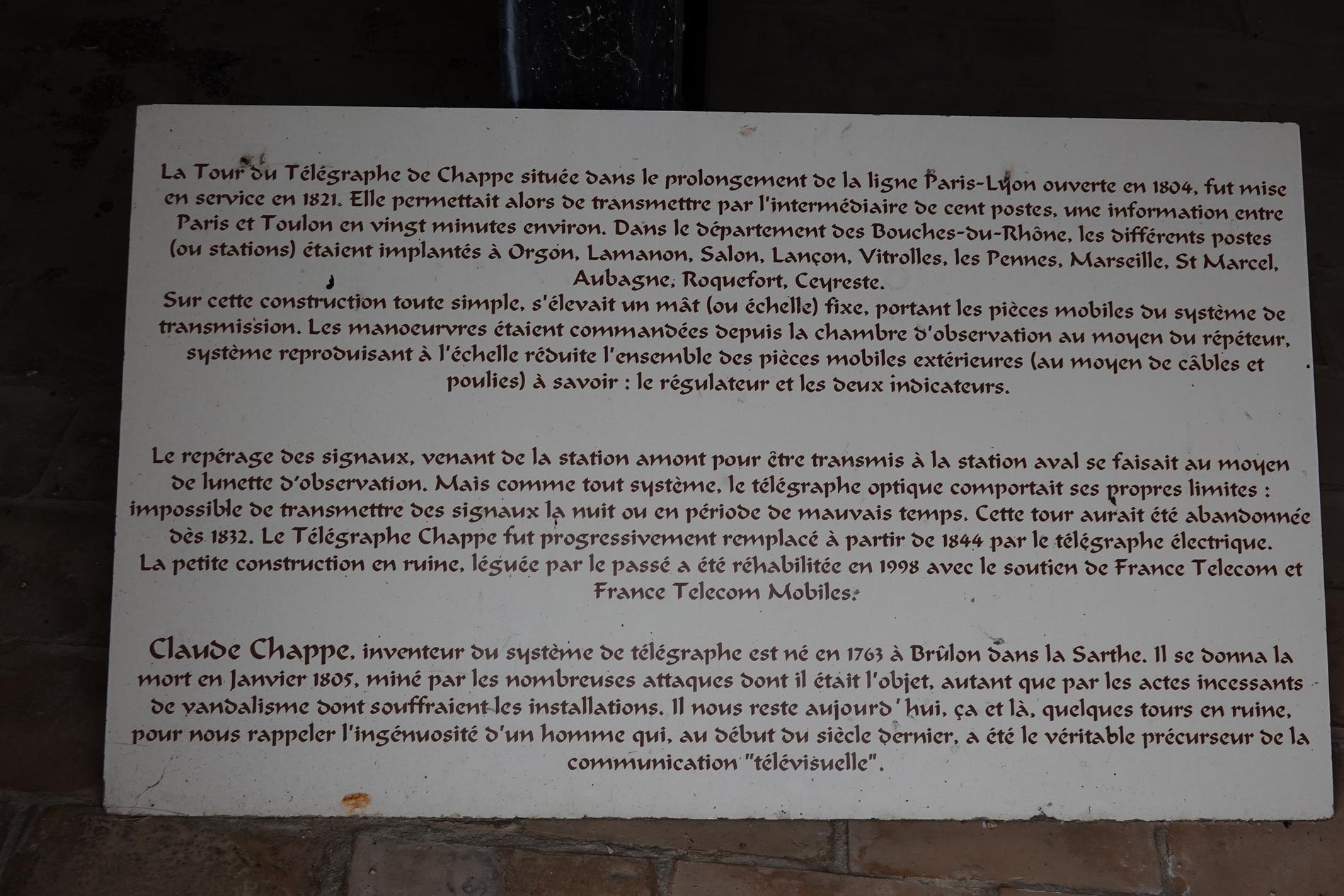 Ci-dessus : Tour du Télégraphe Optique de Claude Chappe, implantée sur les hauteurs de Lançon-de-Provence.