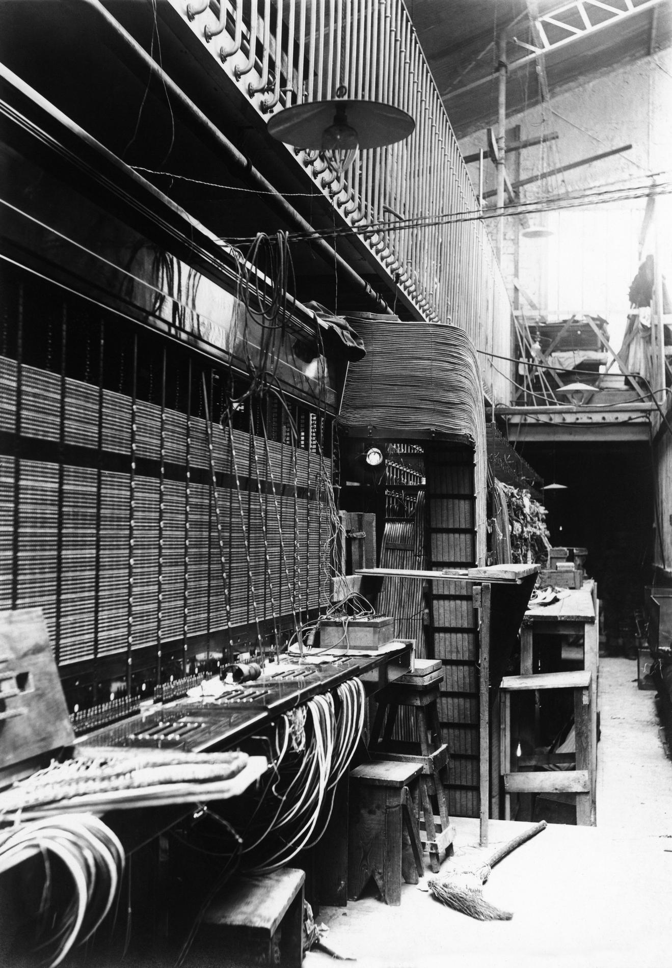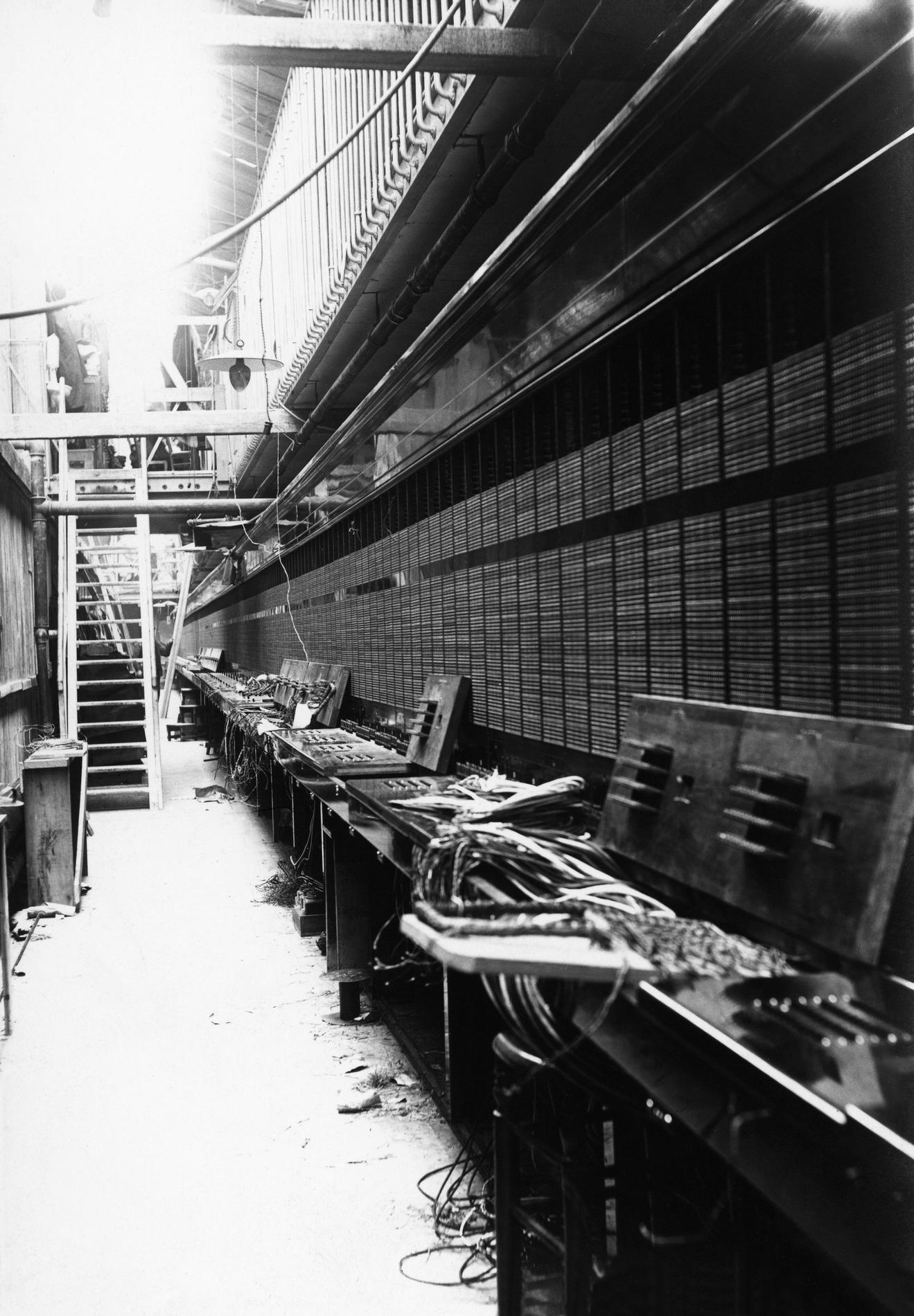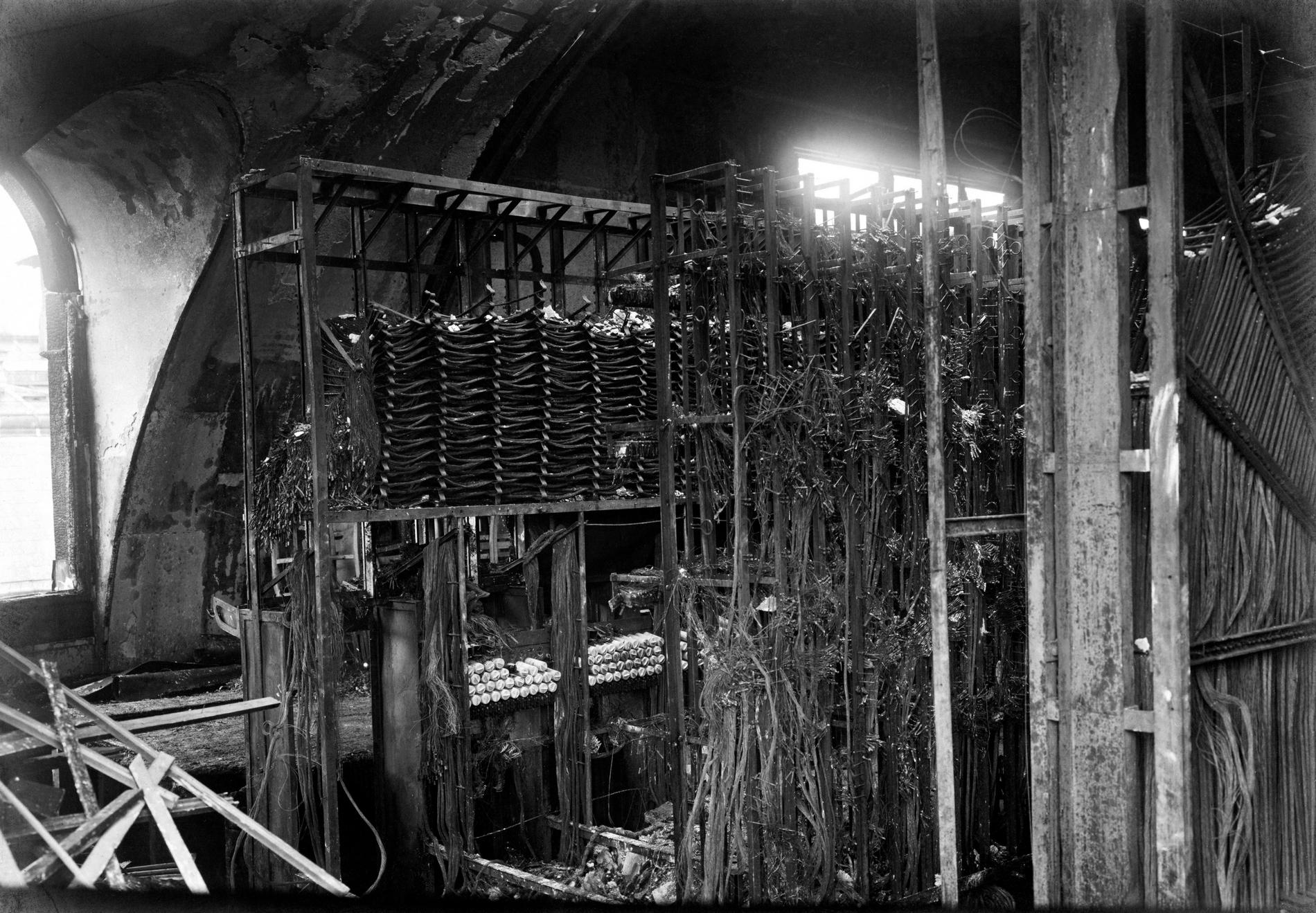 Ci-dessus : Multiple Téléphonique manuel du dernier étage endommagé après l'incendie de l’Hôtel des Téléphones - Gutenberg.