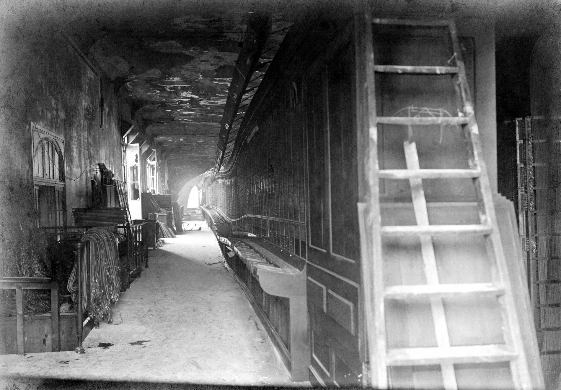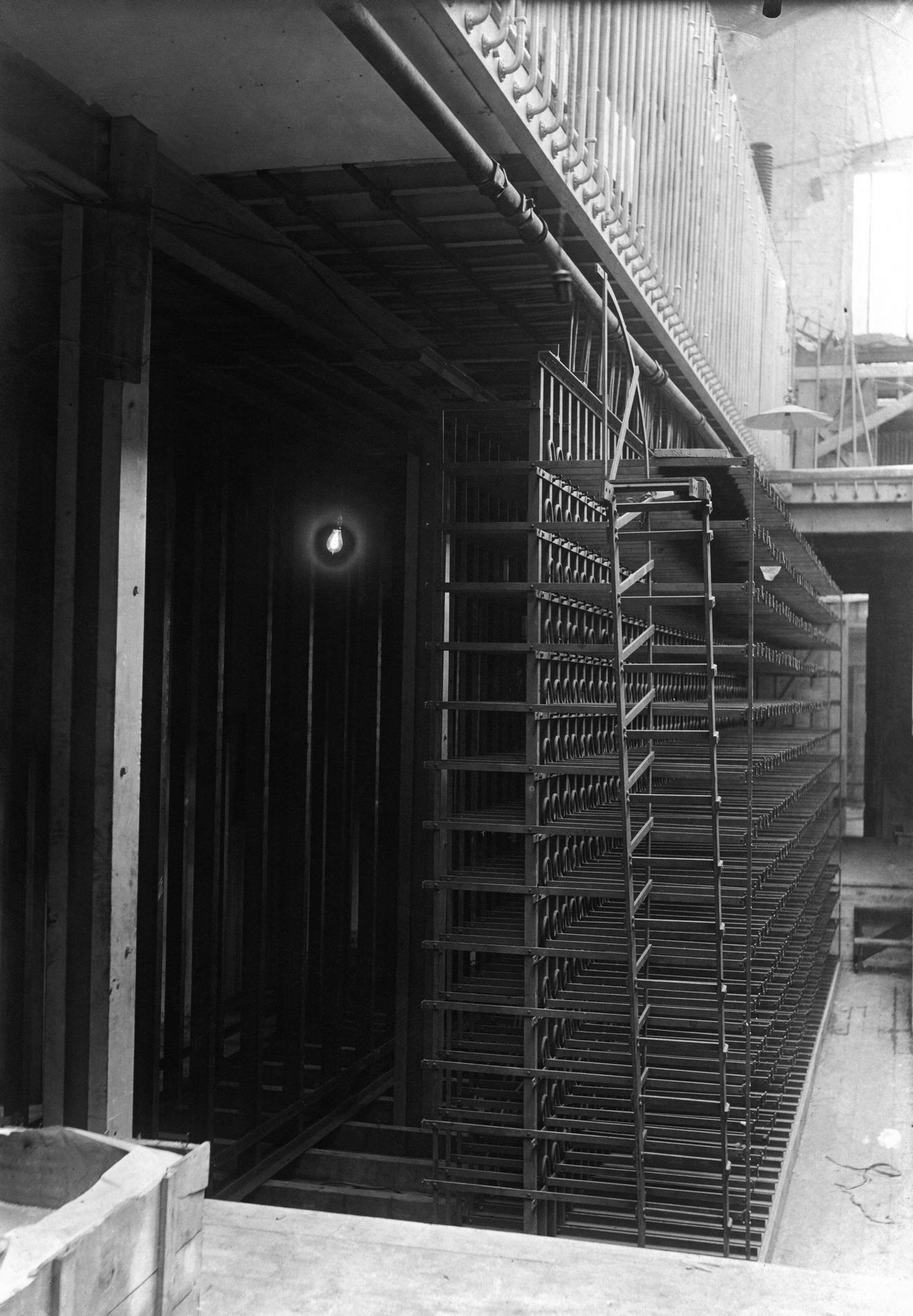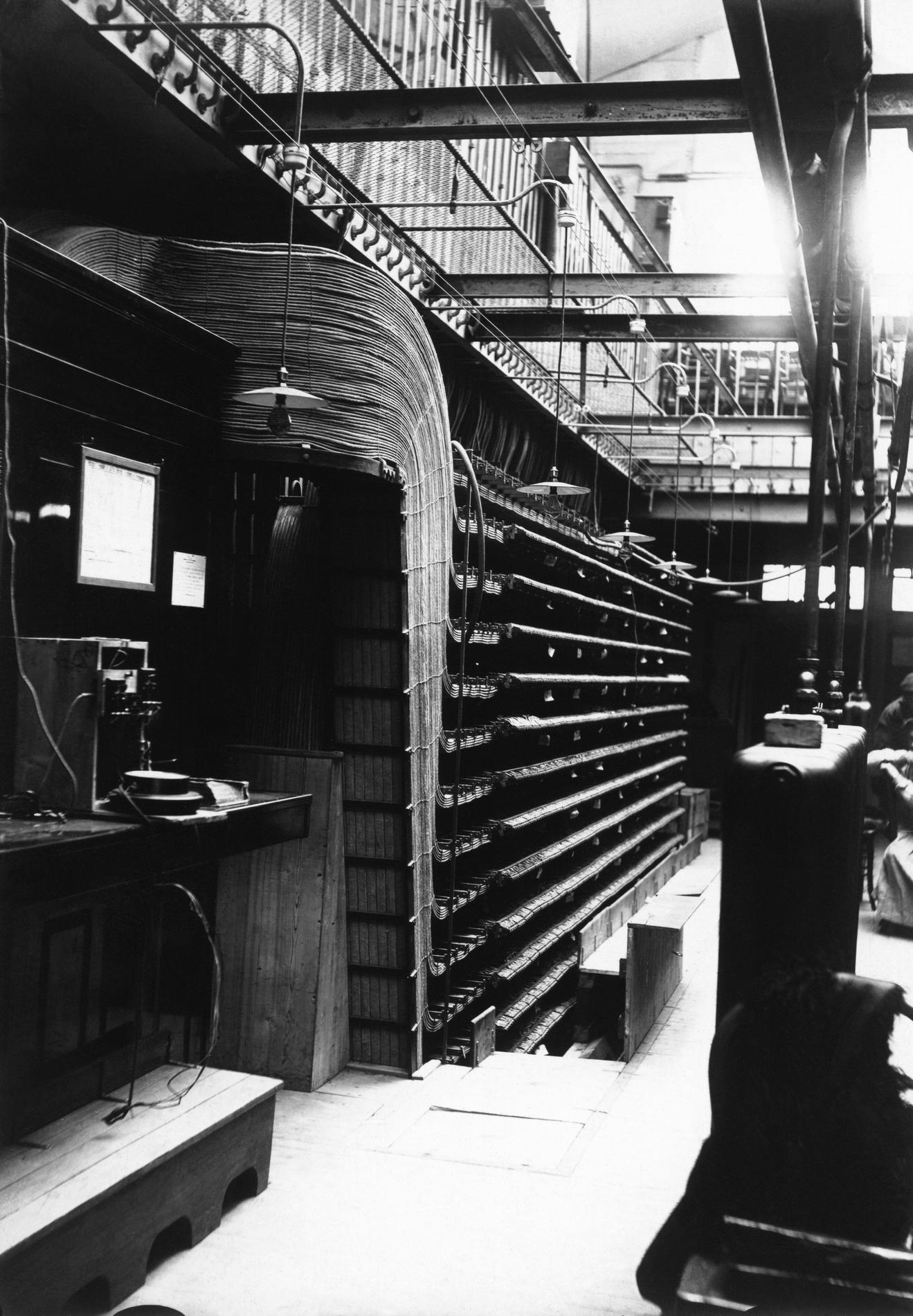 Ci-dessus : Multiple Téléphonique manuel du dernier étage endommagé après l'incendie de l’Hôtel des Téléphones - Gutenberg.