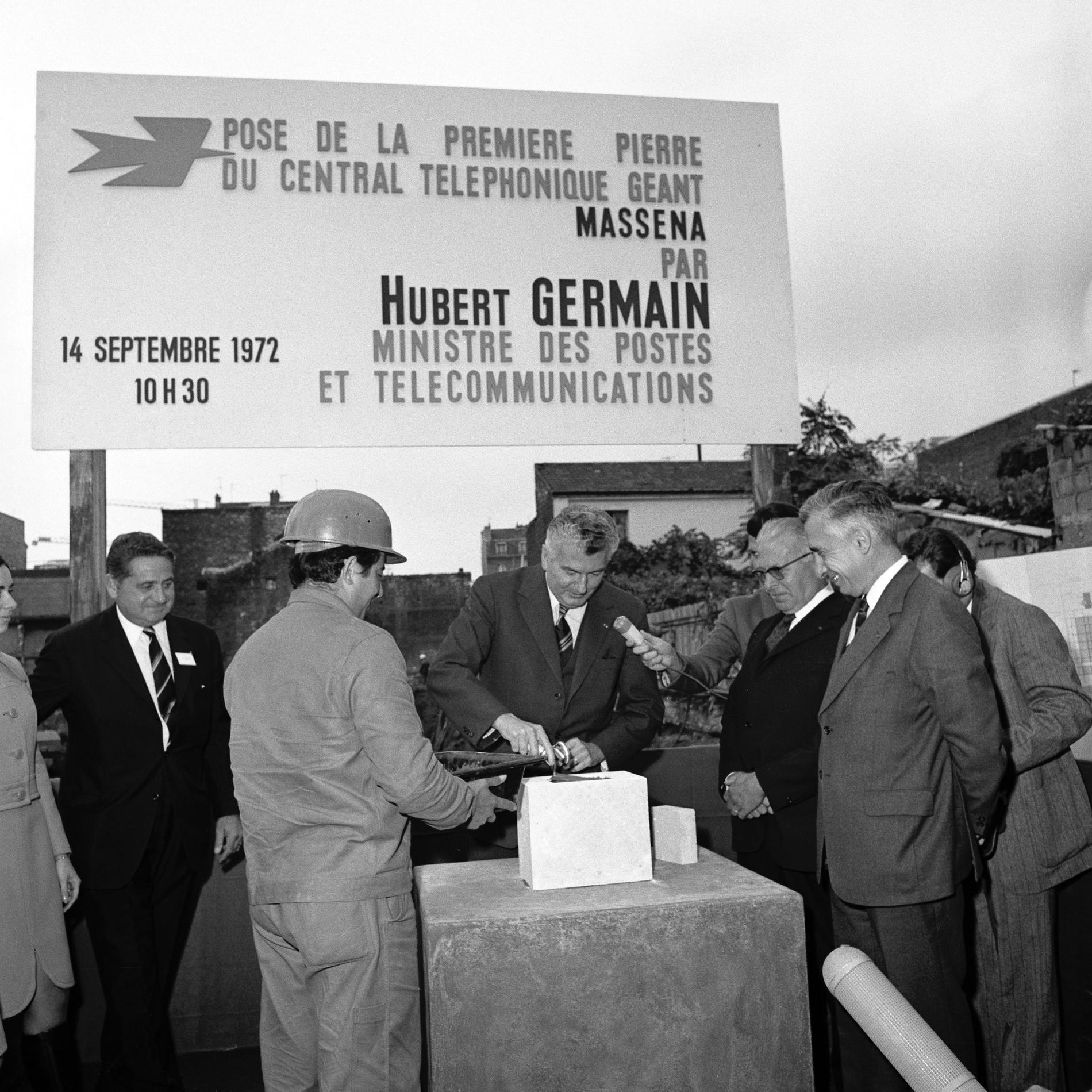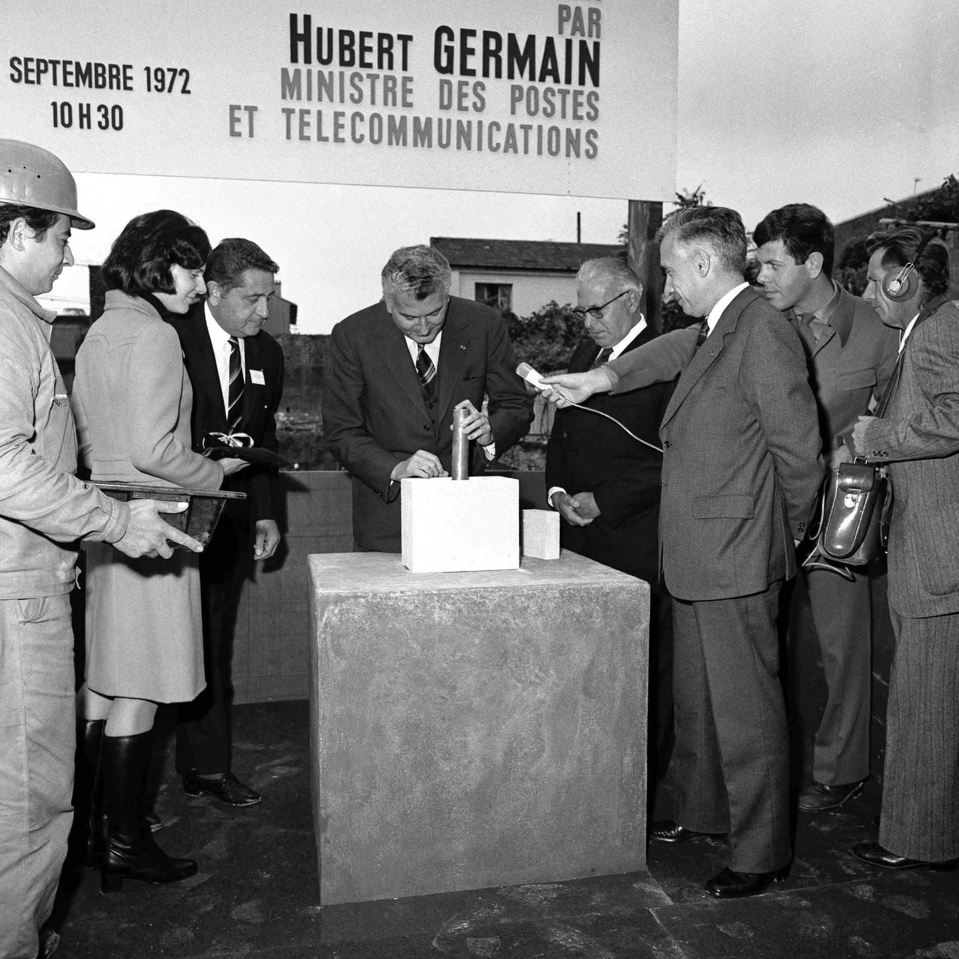 Ci-dessus : pose de la première pierre du Centre de Transit Téléphonique Saint-Germain-en-Laye C.