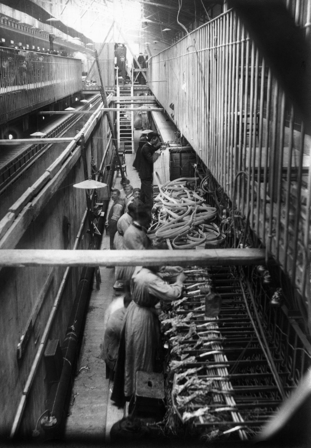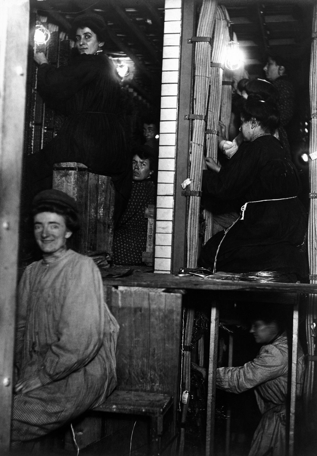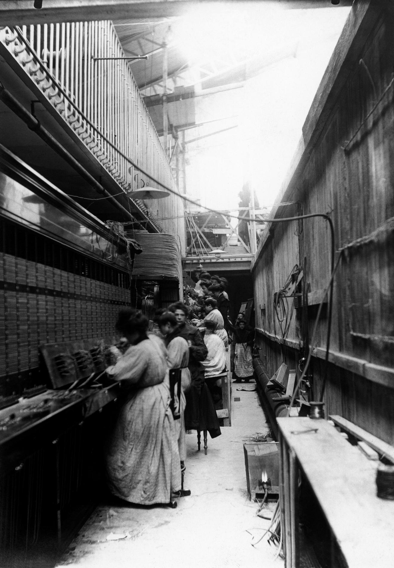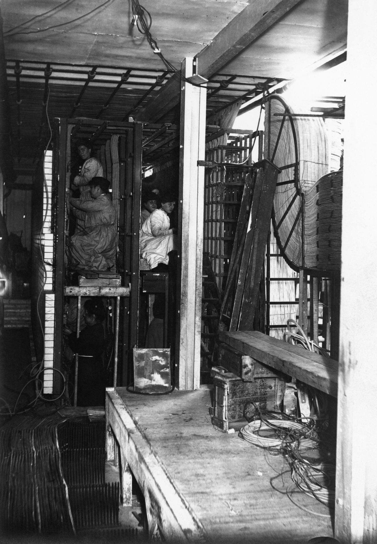 Ci-dessus : chantier de construction des Multiples Téléphoniques manuels provisoire de Gutenberg-Barraque, à l'étape du câblage.