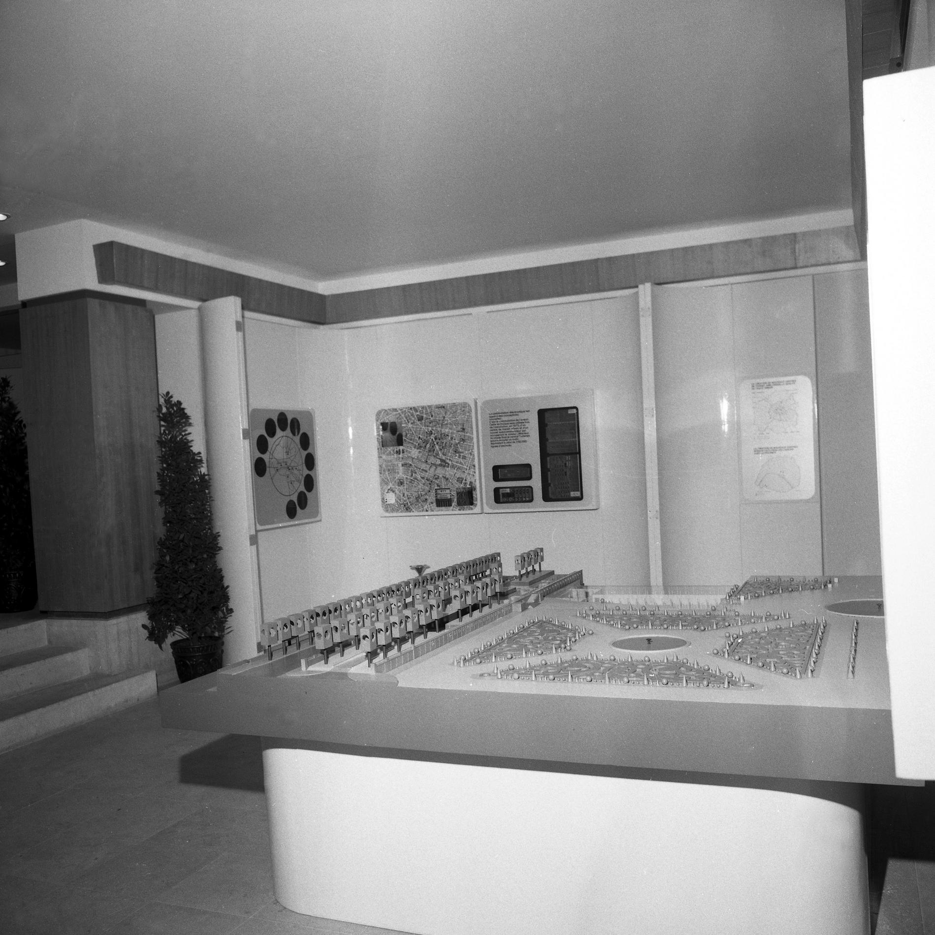 Ci-dessus : Patio du CGEE installé au 3ème sous-sol du Centre Téléphonique Cévennes, avec, au centre, la fontaine en fonctionnement réel.