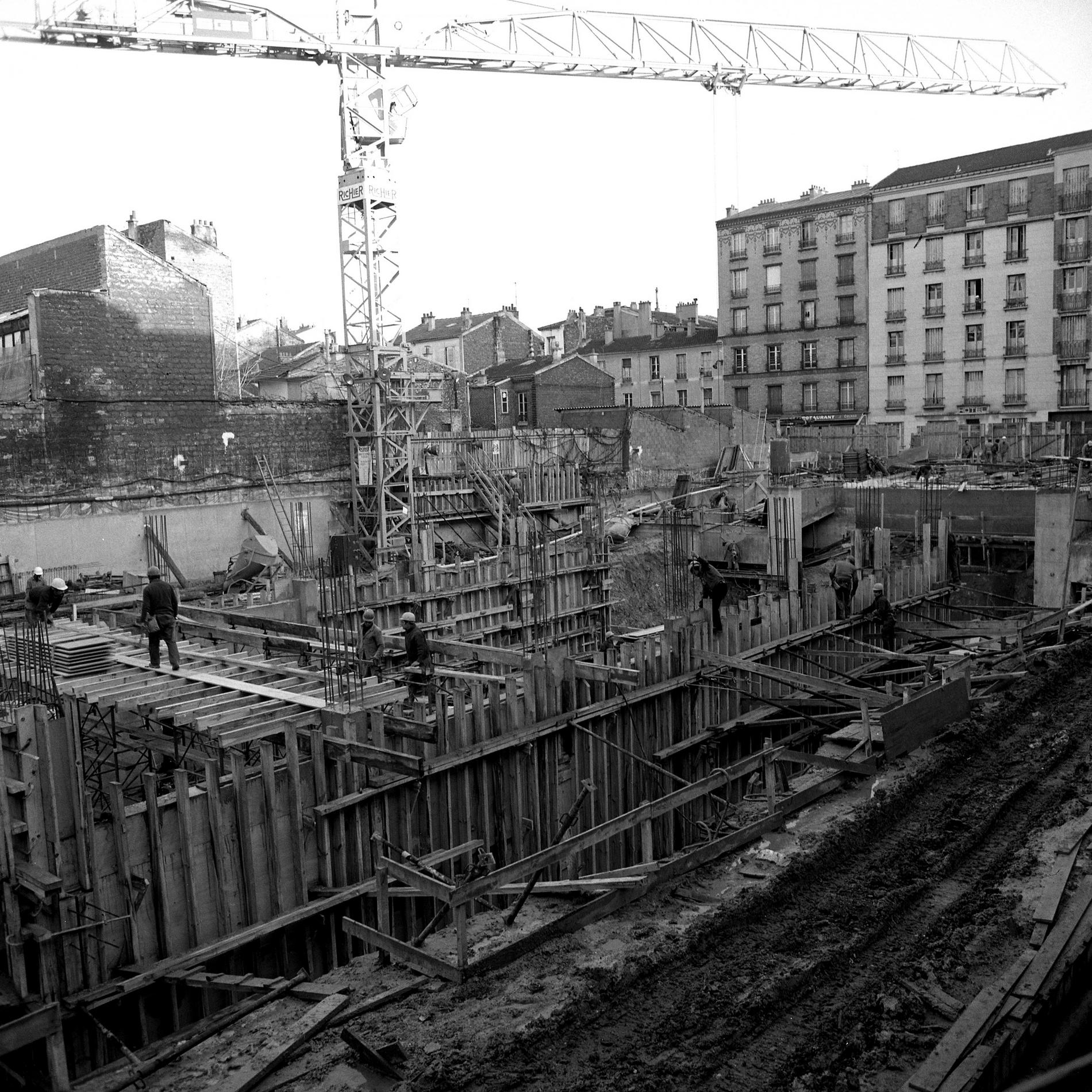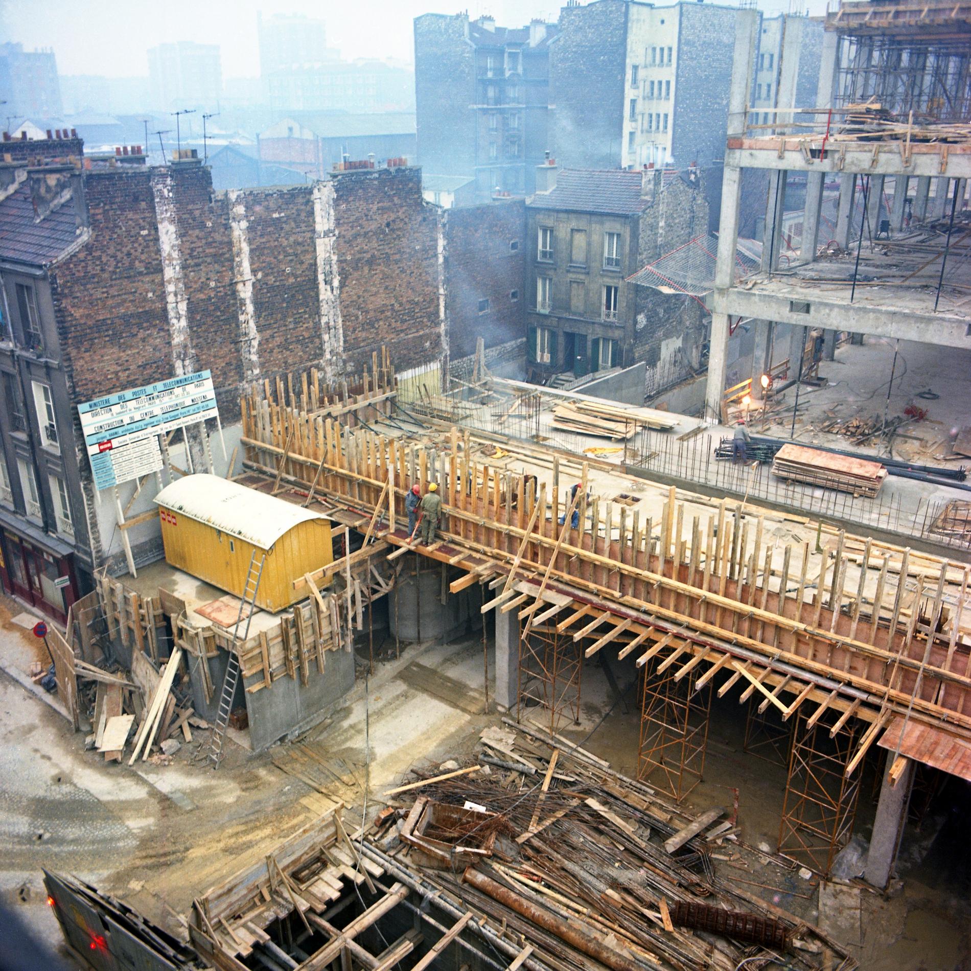 Ci-dessus : début du chantier de construction du Centre Téléphonique géant Masséna.