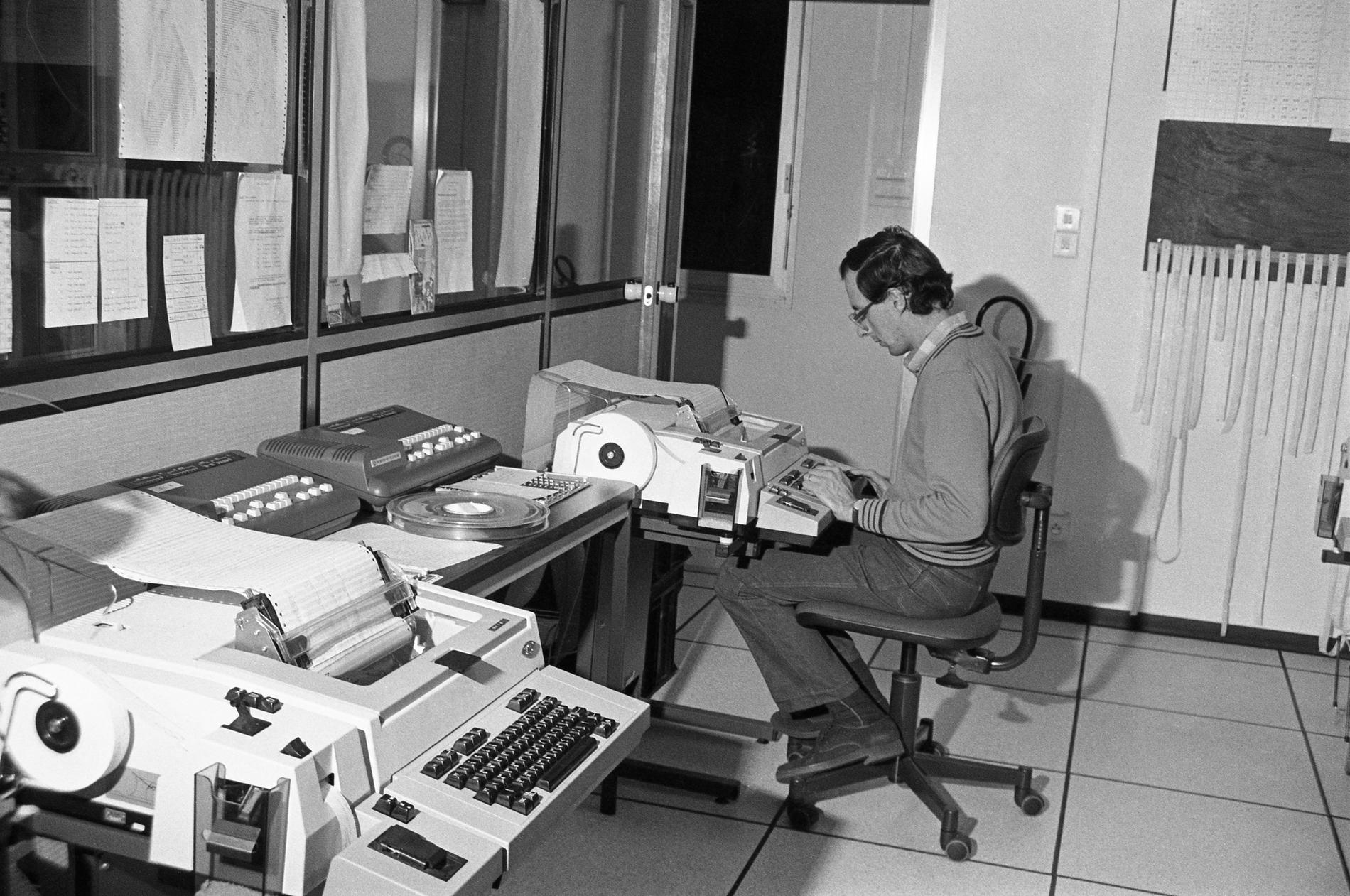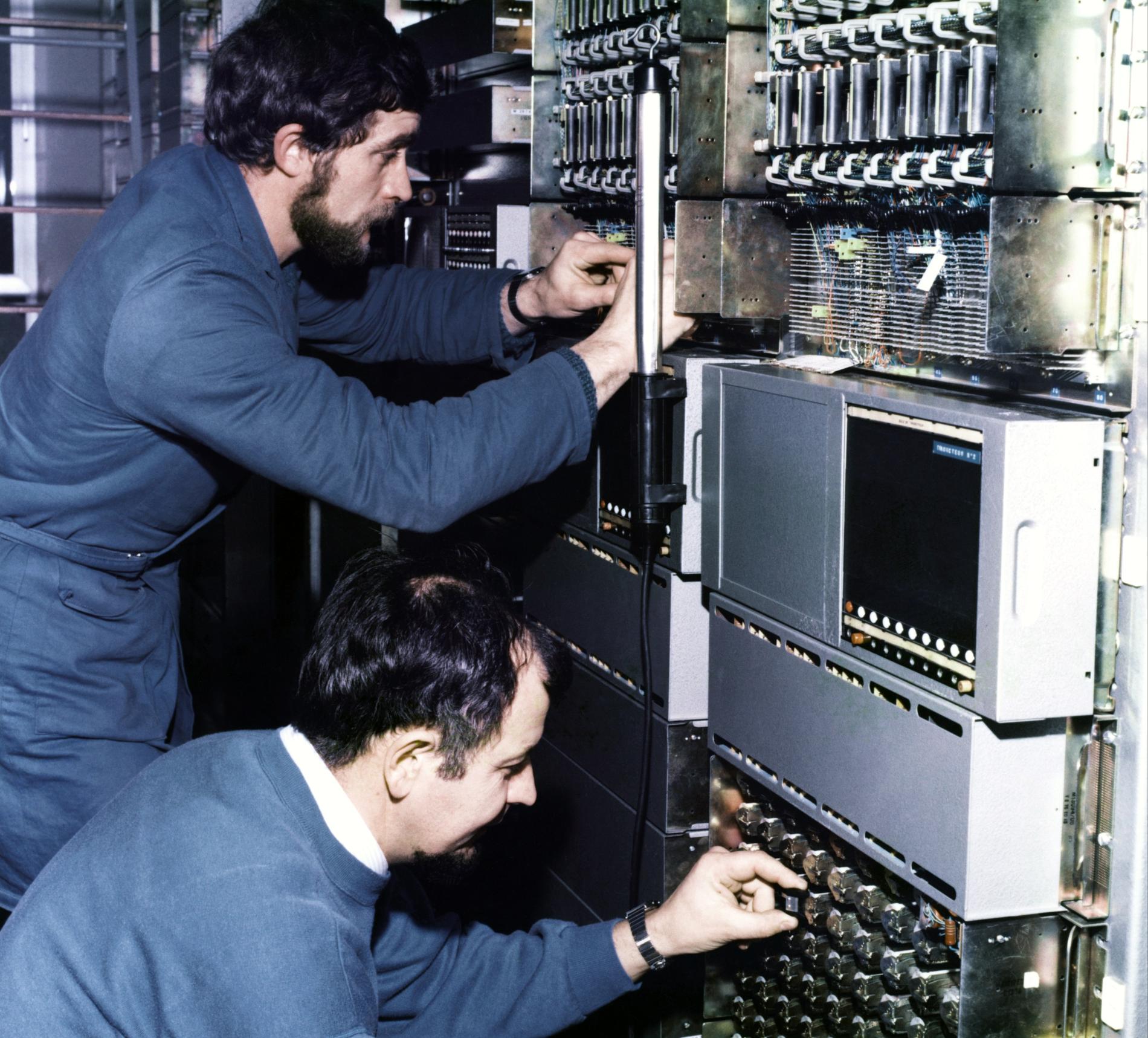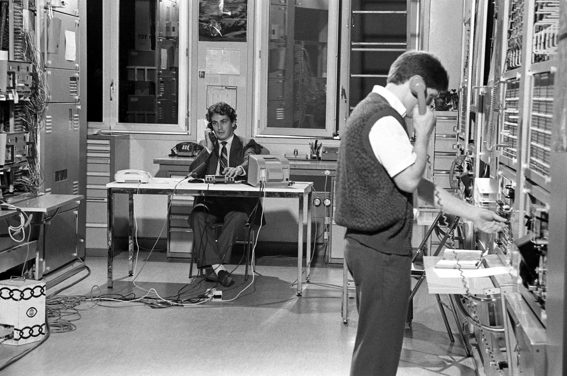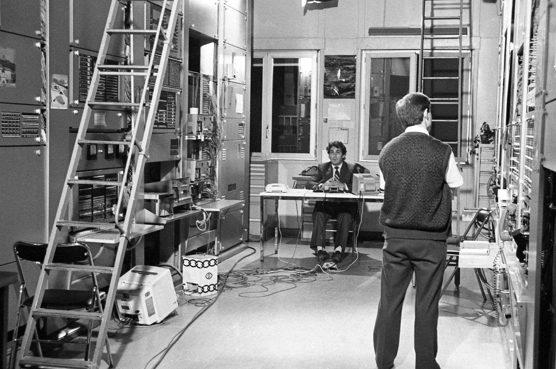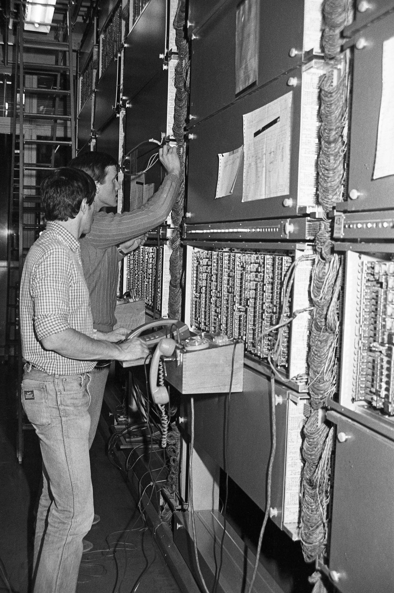 Ci-dessus : Tests en cours en 1984-85 sur le Commutateur CP400 Valognes (CA32). Premier Commutateur à servir de cobaye pour la Nouvelle Numérotation Téléphoniques à 8 chiffres à venir.